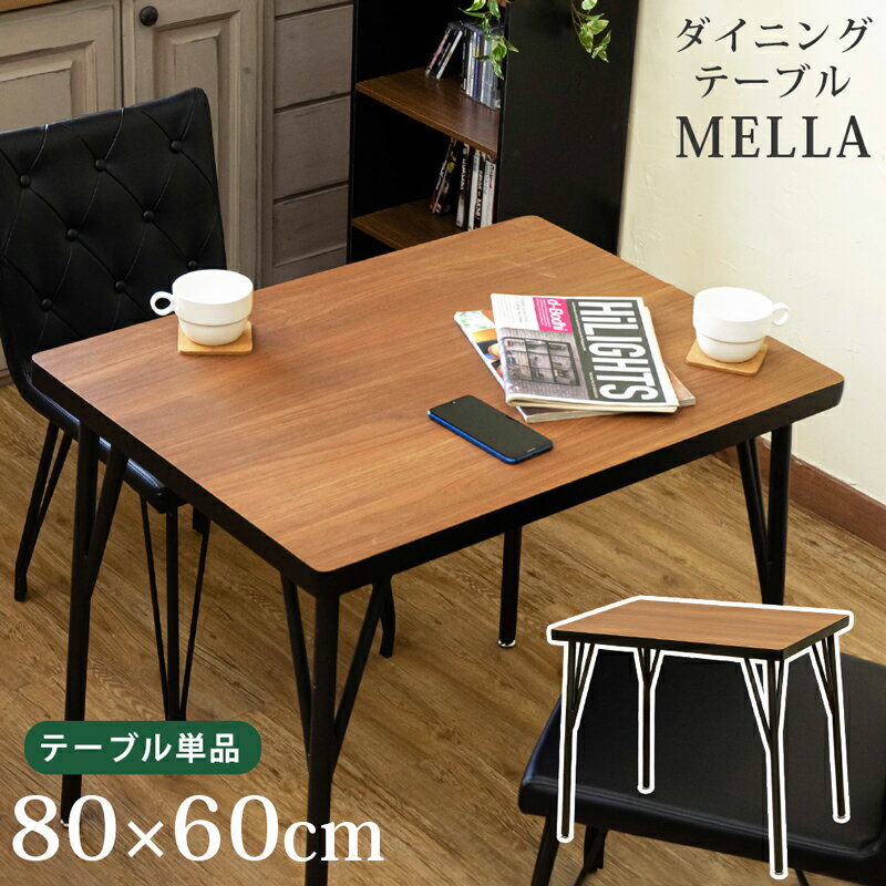 | 【5%OFFクーポン】ダイニングテーブル テーブル ガタツキ防止 アジャスター付きテーブル 長方形 80x60 角丸 2人掛け シンプル 木目調 鉄脚 丈夫 テーブル スチールフレーム アイアン1人暮らし食卓 80 レトロ 食事用 おしゃれ 幅80 80cm 食卓 80センチMELLA
