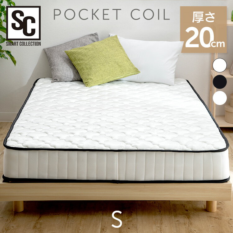 マットレス シングル 厚さ20cm 幅97cm ベッド ポケットコイルポケットコイルマットレス 20cm 圧縮ロール シングルマットレス ポケットコイル 体圧分散 耐久性 通気性 さらさら サラサラ ベッドマット ベッドマットレス 寝具 ベッド用マットレス ホワイト ブラック【D】