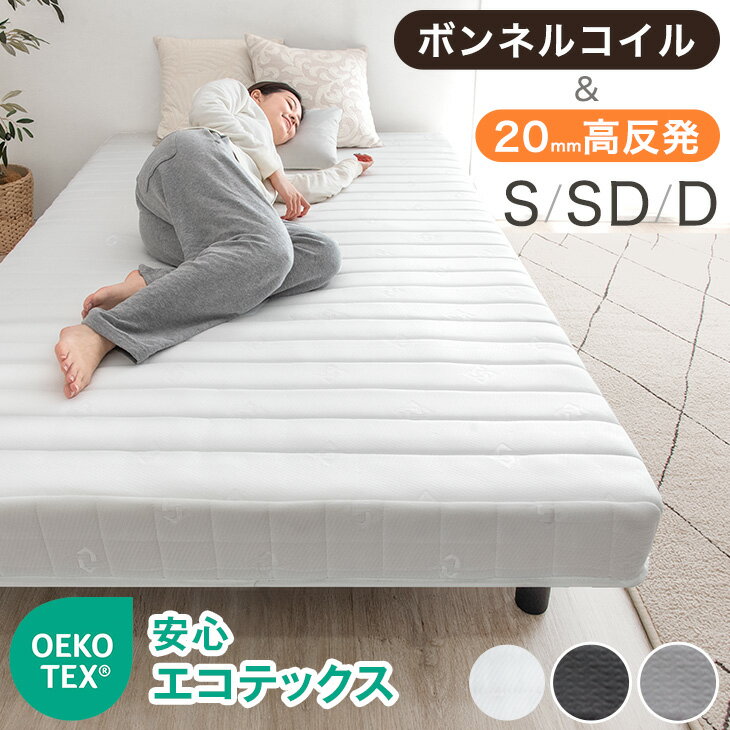 【正午~P5倍】 楽天1位 累計30万台突破!神コスパ 高反発 & ボンネルコイル 脚付きマットレス シングル 安心のエコテックス生地 マットレス ボンネルコイル 脚付マットレス 脚付き シングル セミダブル ダブル ベッド ベット 一体型 ブラック ホワイト