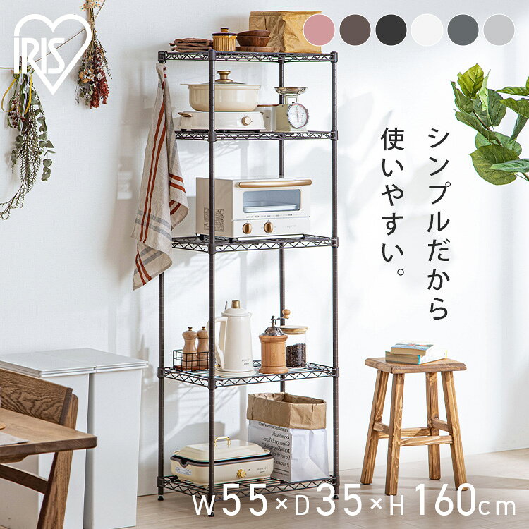 メタルラック スリム CMM-55165スチールラック ホワイト 幅55 奥行35 高さ160 ラック 棚 カラーメタルラック ハイタイプ パイプラック 業務用 収納ラック 収納 収納棚 キッチン収納 ランドリー収納 ランドリー クローゼット アイリスオーヤマ 送料無料