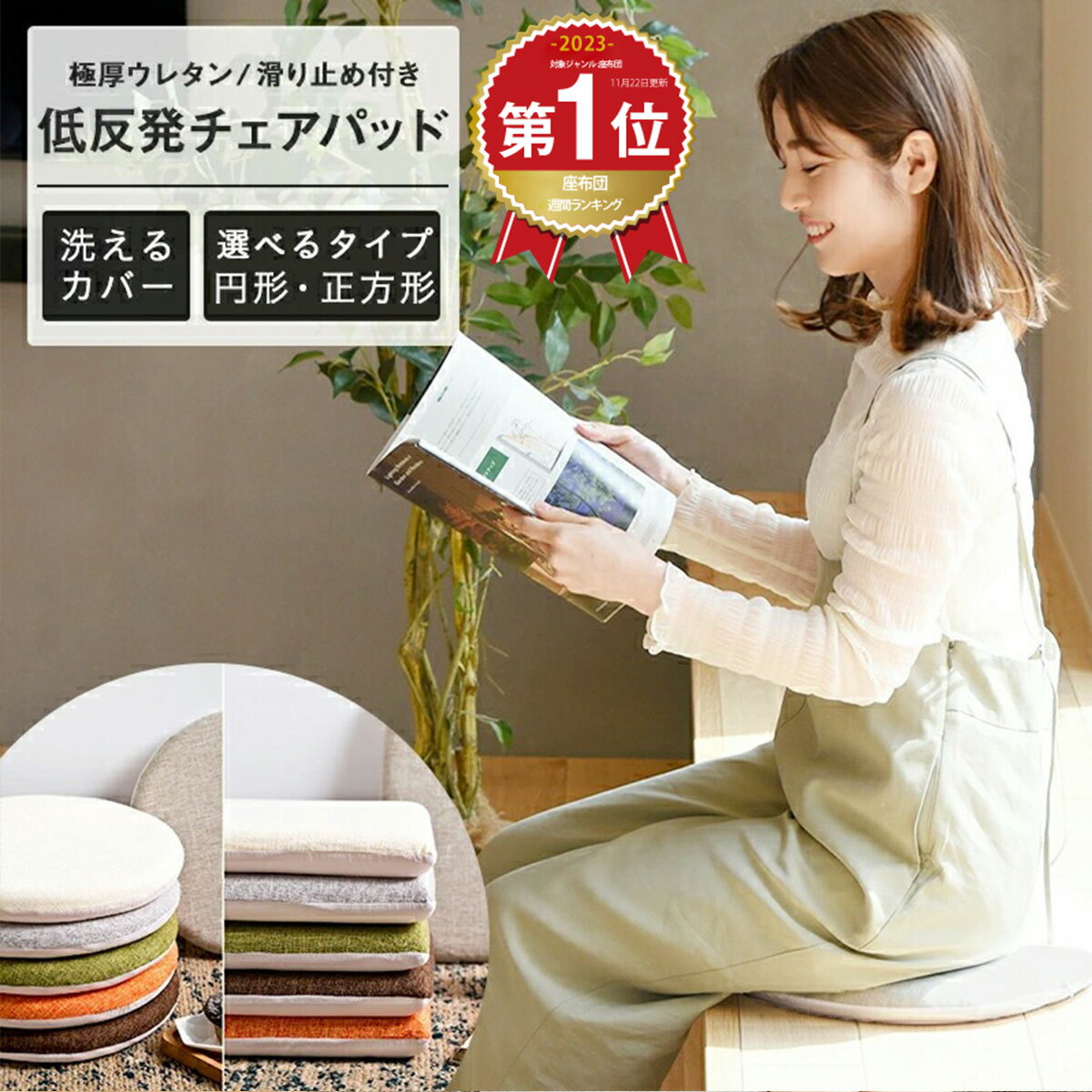 | 【楽天1位獲得!!】 極厚 チェアパッド 低反発 丸 40Rcm 四角 40cm 洗える チェアクッション おしゃれ シートクッション テレワーク 椅子 クッション 椅子クッション 在宅 33524