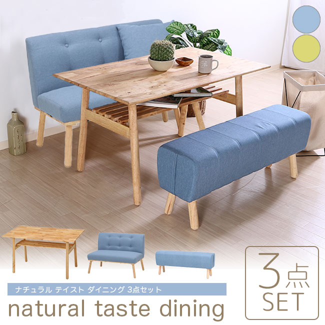 | ダイニングテーブルセット 4人用 北欧 3点 ダイニング ソファ 食卓テーブルセット 4人掛け ベンチ 背もたれ スツール 食卓 木製 ファブリック ナチュラル ブルー シンプル 人気 アウトレット価格