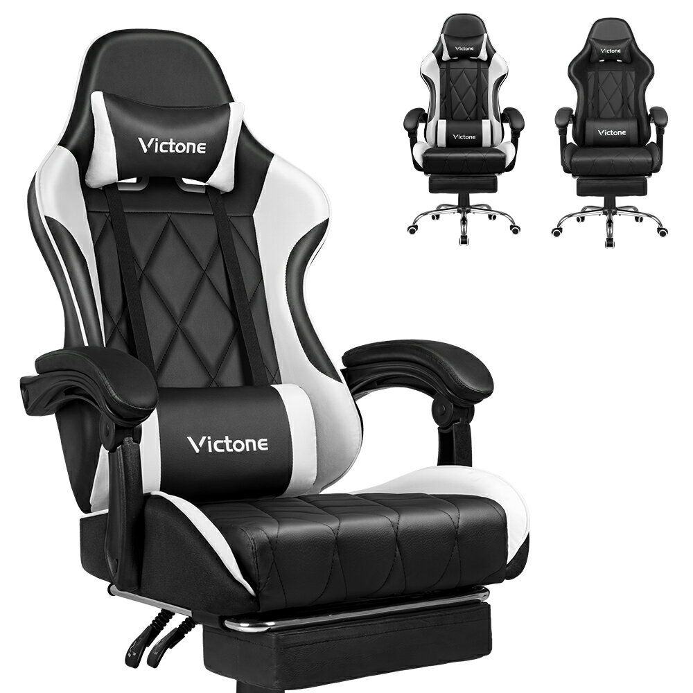 | 【限定全品P10x2/1 23:59迄】Victone ゲーミングチェア オフィスチェア ゲーム用チェア ゲームチェア リクライニングチェア パソコンチェア デスクチェア リクライニング チェア イス 椅子 ホワイト ブラック 人間工学 ヘッドレスト ランバーサポート ハイバック