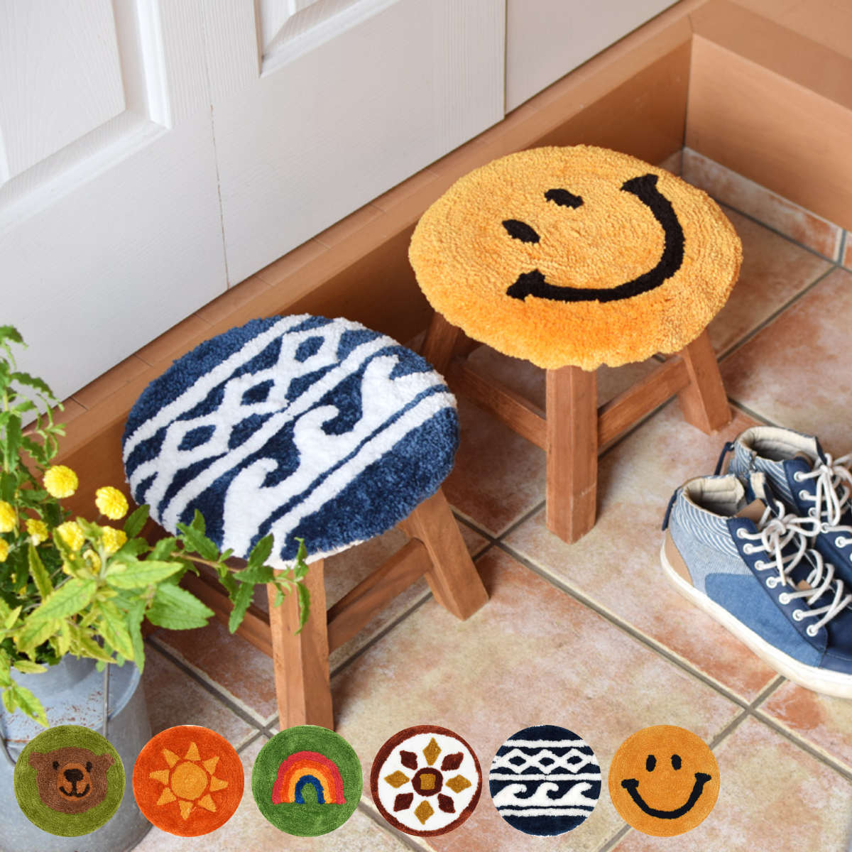 | 【先着】最大400円OFFクーポン有! スツールカバー タフティング インド製 ( カバー チェアパッド 丸イス ラウンドスツール 椅子 いすカバー 丸 円形 かわいい おしゃれ 子ども キッズ インテリア 座面のみ ) 【39ショップ】