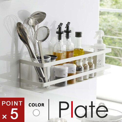 | 山崎実業 冷蔵庫横マグネットワイド収納ラック プレート Plate ホワイト 4120 冷蔵庫 マグネット 収納 白 マグネット サイドラック キッチン 台所 小物収納 北欧