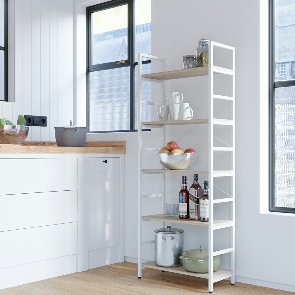 【SALE9,480円】【SALE11,800円~】【SALE9,980円】 DomyHome&Bestier オープンラック 木製 オープンラック 白 シェルフオープンラック 5段ラック ラック 木製幅60×奥行28×高さ約155CM ★9段階で棚の高さを調節可能 レイアウト自在 キッチンからリビングまでマルチに活躍、シリーズで優雅で快適★