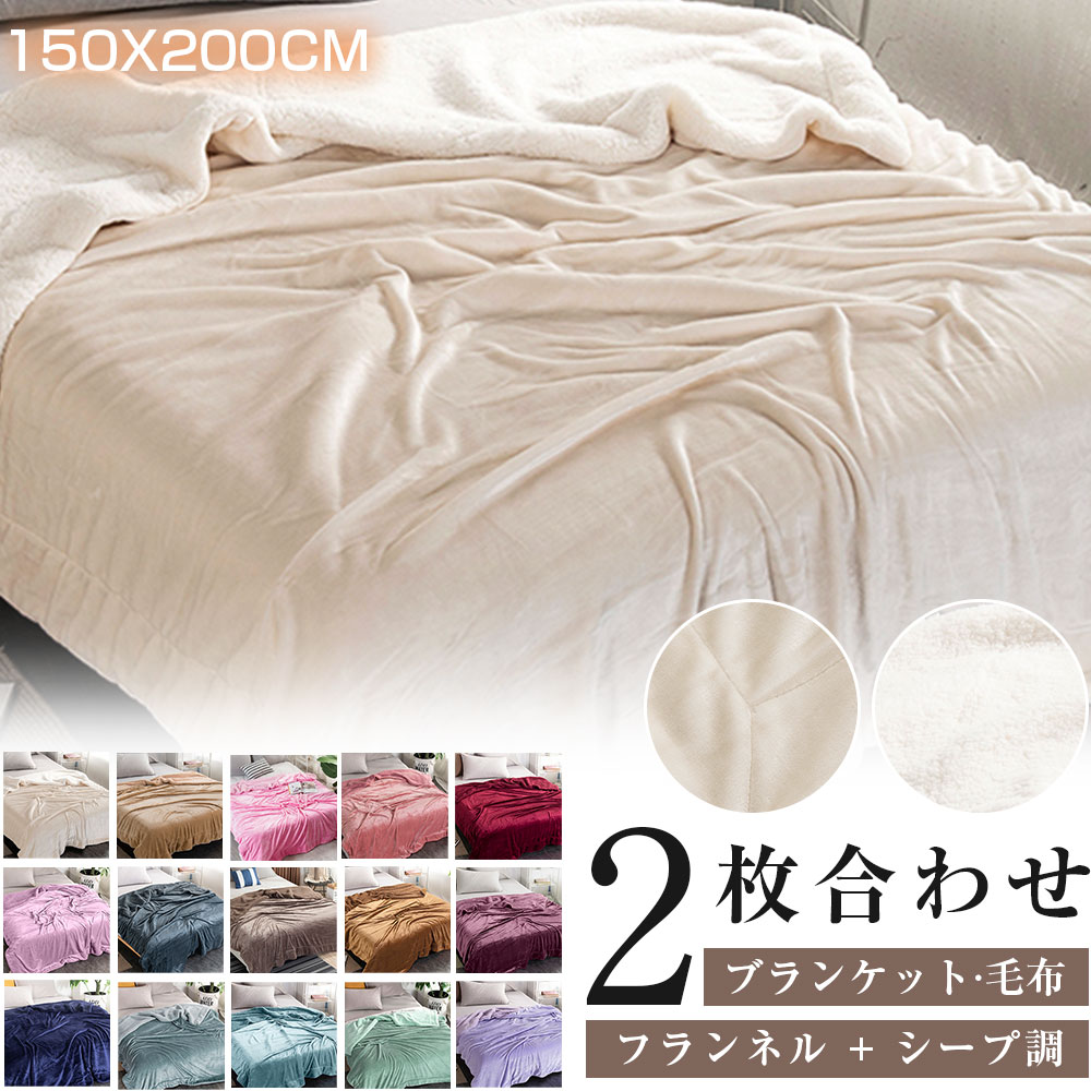 | 毛布 2枚合わせ ブランケット フランネル 厚手 シングル 150x200cm シープ調ボア 洗える 毛布布団 あったか 掛け布団 暖かい ひざ掛け ダブル もこもこ毛布 敷パッド 寝具 綿入り 通気 抗菌防臭 吸湿発熱 静電防止 柔らかい 大判 秋 冬 北欧 父 母 彼女 プレゼント 送料無料