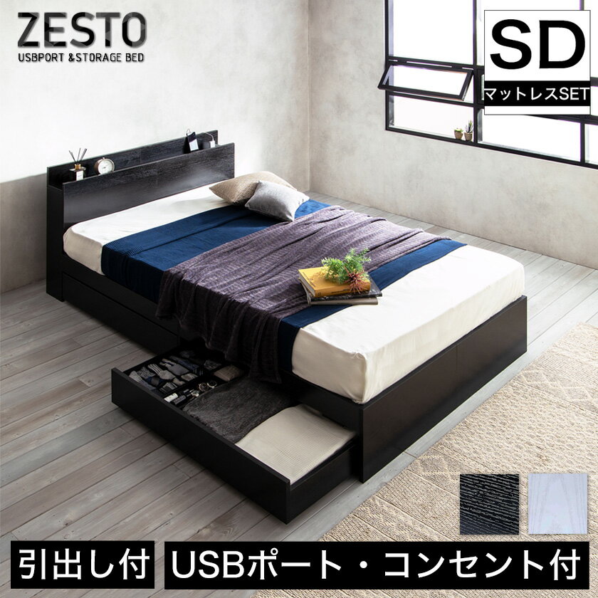 Color 棚・コンセント・引き出し収納付きベッド Zesto 便利なUSBポートは1口、コンセントは2口の計3口搭載。