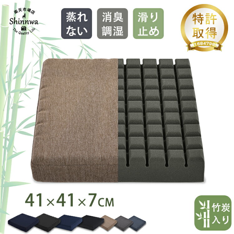 あす楽 楽天配送★クッション 椅子 蒸れない 竹炭入り 腰痛 角41cm 滑り止め あぐら クッション 介護 大きい 在宅 車 オフィス チェア クッション 座布団 フロアクッション イス 車いす 体圧分散 おしゃれ いす用 事務椅子 シートクッション 床 座る クッション