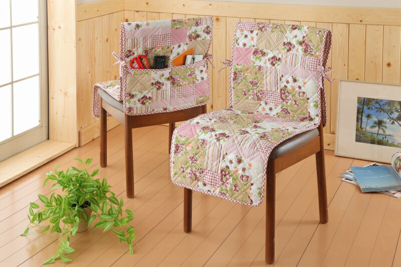 備考:パッチワーク調花柄椅子カバー キュート キズや汚れを隠すにどうぞ! 掛けだけでお部屋が華やかに! 背面収納に便利なポケット付き! 裏面滑りにくい加工でずれにくい!