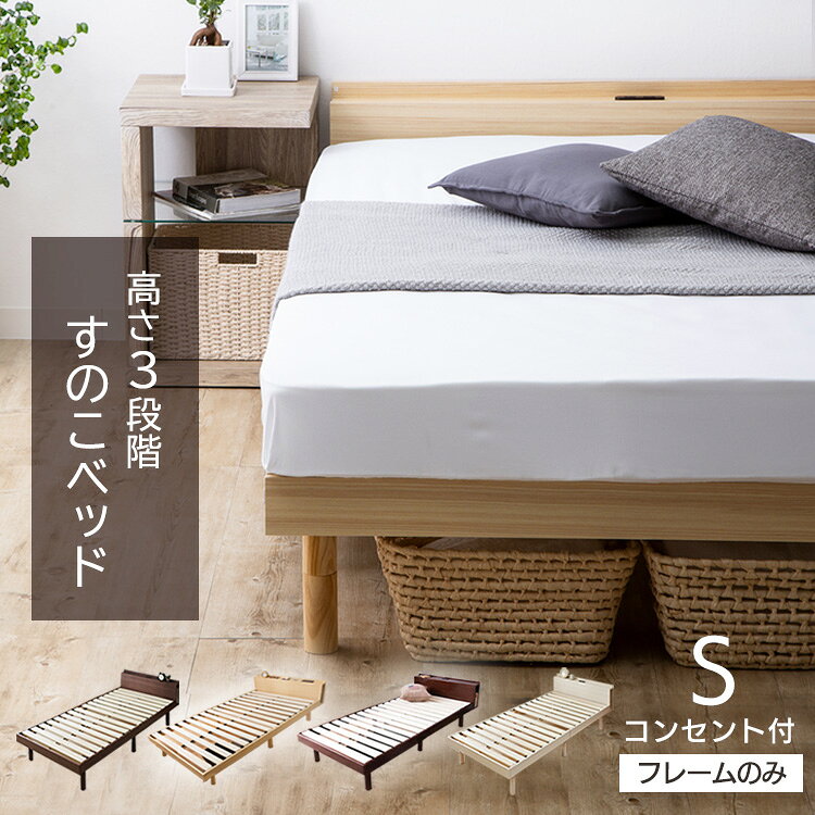 | ベッド シングル すのこベッド ベッドフレーム 高さ 3段階 調節可能送料無料 ベッド コンセント付きベッド 棚コンセント付き頑丈スノコベッド 天然木 ギフト 新生活 一人暮らし【★2】