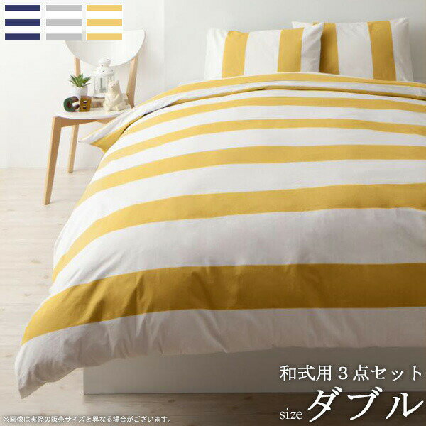 | 日本製 布団カバー 3点セット ダブル セット ベッド用カバー3点セット 和式用 綿100% 肌触り 洗える 掛け布団カバー 掛布団カバー 敷き布団カバー 敷布団カバー ピローケース 枕カバー セット 布団カバーセット 寝具カバーセット ベッド用 清潔 ボーダー柄 一人暮し ORDY