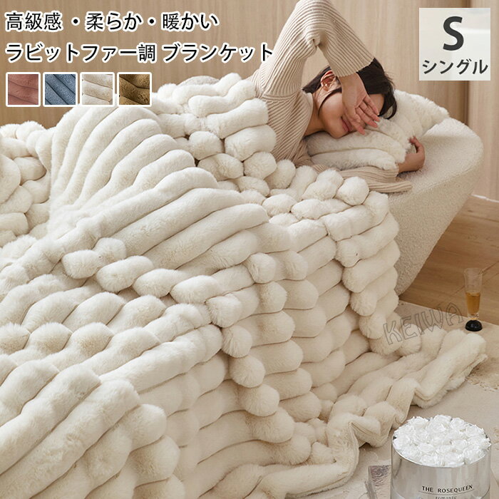 ブランケット ラビットファー調 毛布 シングル 150×200cm ソファカバー マルチカバー フェイクファー ふわふわ もこもこ 高級感 かわいい やわらか あったか 暖かい 厚手 掛け毛布 もうふ おしゃれ 北欧 インテリア 秋 冬 寝具 洗える 新生活 プレゼント
