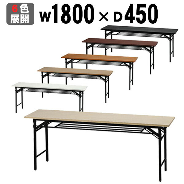 会議用テーブル 折りたたみ 1800 450 棚付き 会議テーブル 6色 長机 ミーティングテーブル 幅1800 奥行450 高さ700 折りたたみテーブル 会議用 長テーブル 折り畳み オフィステーブル 作業机 1845 W1800 D450 フォールディングテーブル オフィス家具 GD-688 【法人様限定】