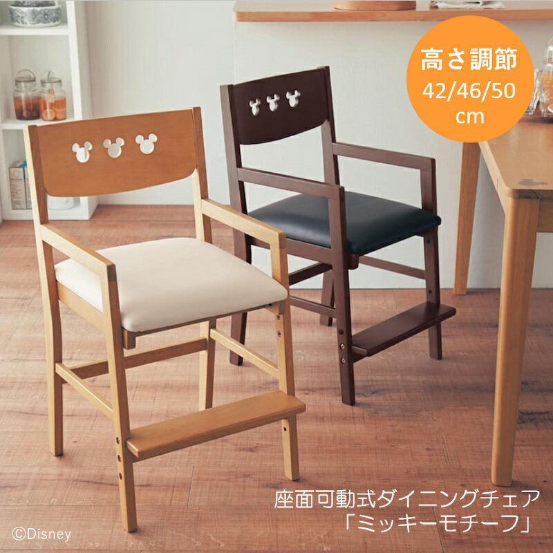 | 【Disney】 ディズニー 座面可動式ダイニングチェア「ミッキーモチーフ」「ナチュラル ダークブラウン」 ◇ 家具 ファニチャー チェア ダイニングチェア ダイニング 椅子 大人 子供 新生活 高さ 調節 座面 調整 変更 ◇