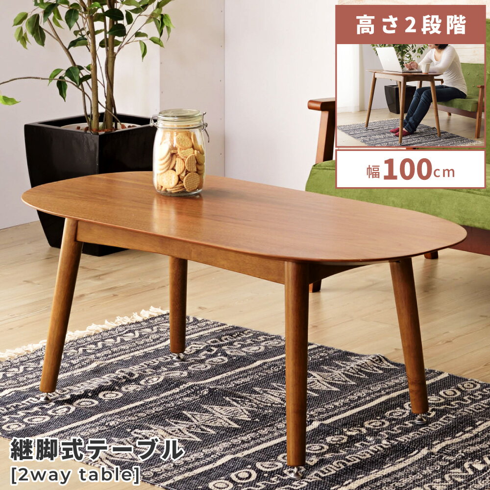 ローテーブル センターテーブル テーブル おしゃれ リビングテーブル 幅100cm 2WAY 高さ調節 木製 天然木 2段階 継脚 シンプル 北欧 ソファ リビング 一人暮らし デスク パソコン 高さ40cm 高さ60cm 新生活