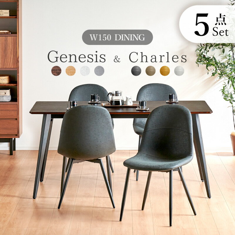 3/4からp5倍+クーポン◆ダイニングセット ダイニングテーブルセット 幅150 5点セット 4人掛け 4人用 ダイニング 食卓 テーブル セット おしゃれ スタイリッシュ 木目調 コンクリ調 鉄脚 ナチュラル インダストリアル ジェネシス150テーブル&シャルルチェア