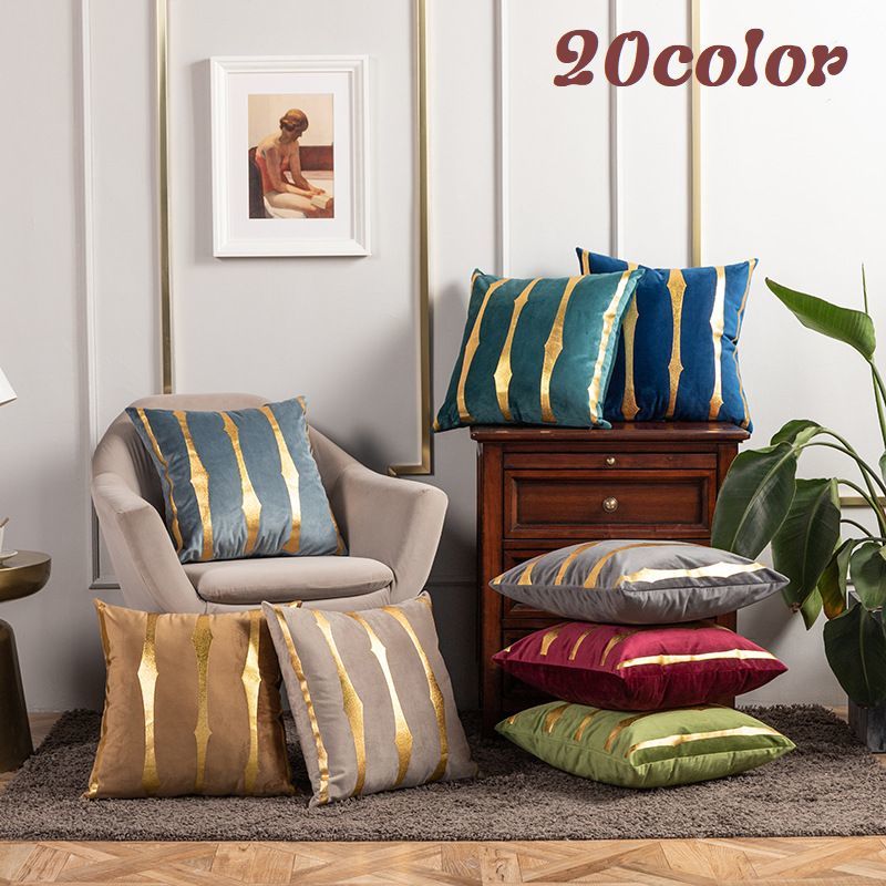 送料無料 クッションカバー インテリア雑貨 45 45cm 正方形 角型 ストライプ 単品 カバーのみ ファスナー 四角 スクエア おしゃれ ゴールド 金 光沢 高級感 モダン エレガント 上品