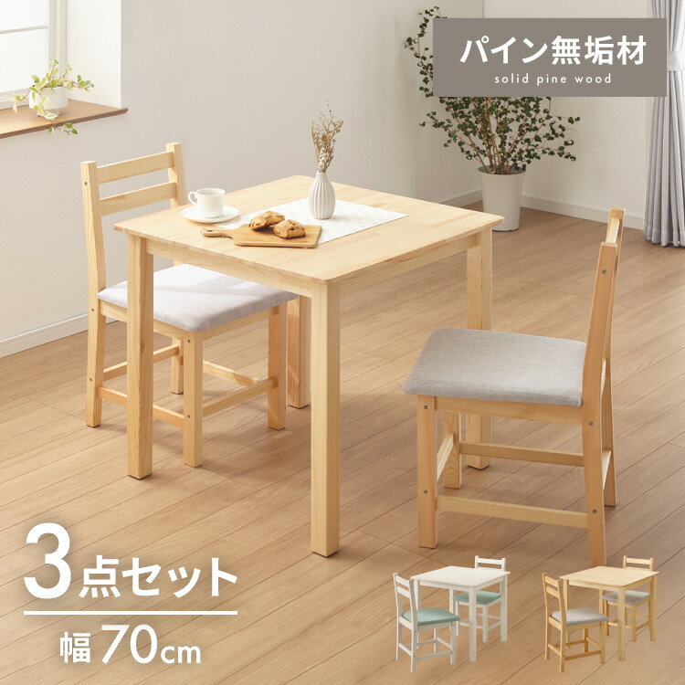 | ダイニングテーブルセット 2人 2人掛け 3点セット 天然木 パイン材 2人用 小さめ 幅70cm おしゃれ 北欧 ナチュラル ダイニングセット ダイニングテーブル3点セット ダイニング3点セット【送料無料】