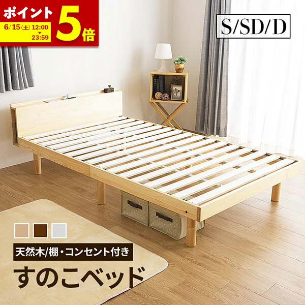 【ポイント5倍★3/15 12:00~23:59】 すのこベッド シングル セミダブル ダブル ベッド フレーム すのこ ベット 頑丈 宮付き スノコ コンセント ベッドフレーム 天然木 高さ3段階 一人暮らし ローベッド 白 シンプル 脚 高さ調節 ホワイト ナチュラル ウォルナット 木製