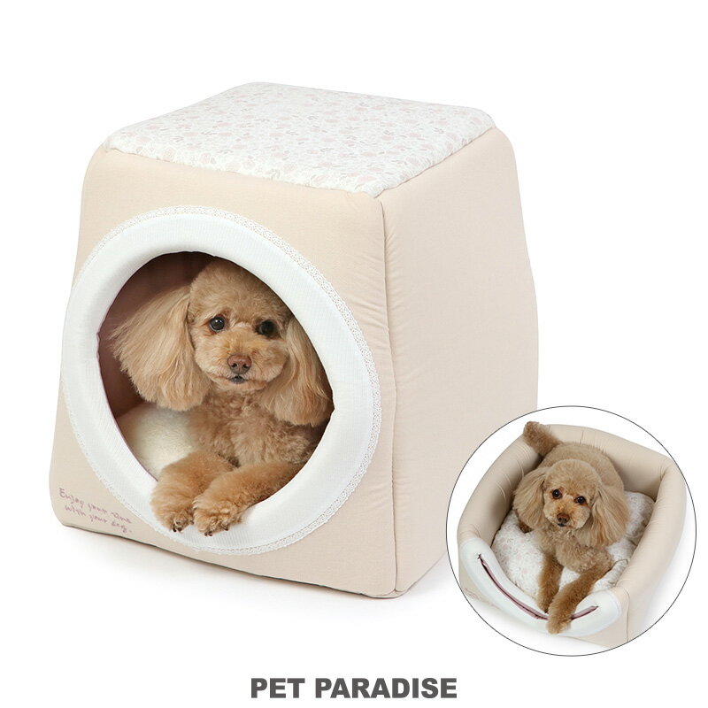 犬 ペットベッド おしゃれ 花柄 2wayハウス (40×40cm) | ベージュ カドラーベッド 猫 シンプル 小型犬 おしゃれ かわいい 四角