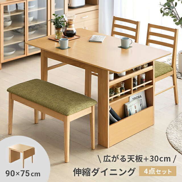 ダイニングテーブルセット 4人掛け ベンチ バタフライ 伸長式 ダイニングセット 4人 収納付き ダイニング 4点セット チェア ベンチ ダイニングチェア 北欧 モダン ウッド 木 カントリー 天然木 食卓テーブル おしゃれ