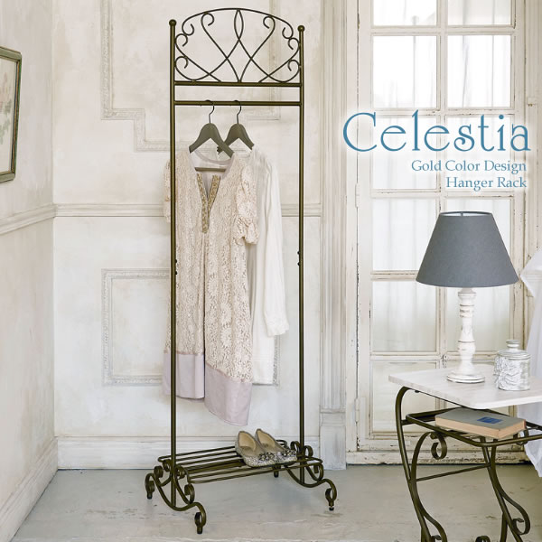 曲線をあしらった装飾の洗練されたデザイン、 心地よさを醸し出すアンティークゴールドが人気の 『Celestia(セレスティア)』シリーズのハンガーラックです。