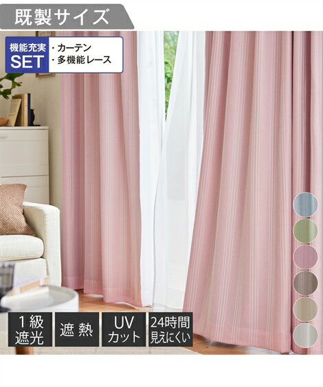 ★他のサイズは以下をご覧ください 幅100×長さ90cm はこちら 幅100×長さ110cm はこちら 幅100×長さ135cm はこちら 幅100×長さ150cm はこちら 幅100×長さ178cm はこちら 幅100×長さ185cm はこちら 幅100×長さ230cm はこちらストライプ柄ドビー織1級遮光カーテン&24時間見えにくいレース4枚セット ニッセン nissen ブラウン ピンク ブルー カラー ブラウン/ピンク/ブルー サイズ 16・幅100×長さ200(198)cm 素材