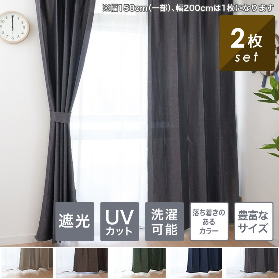 カーテン 2枚セット 遮光 カーテン2枚組 杢(モク)調 幅 100 150 cm 各 2枚組 幅200 cm 1枚入 丈 135 178 200 220 cm 北欧 安い シンプル かわいい おしゃれ 無地 既製 洗濯可能 UVカット ナチュラル オシャレ シンプル ブラウン ネイビー