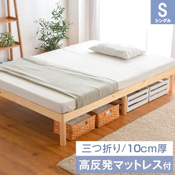 【正午~5%OFFクーポン】 【お得セット】 シングルベッド マットレス付 すのこベッド 高さ調節 3段階 ベッド シングル 3つ折り マットレス ローベッド ベット ベッドフレーム マットレス マットレス付き 高反発マットレス 高反発 マットレスセット ヘッドレス