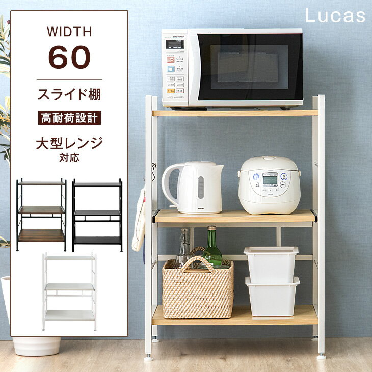 | レンジラック 幅60cm 大型レンジ対応 レンジ台 スライド棚 キッチンラック 収納家具 レンジボード キッチン収納 食器棚 オープンラック コンパクト ロータイプ キッチン収納 北欧 シンプル スリム 60 キッチンボード