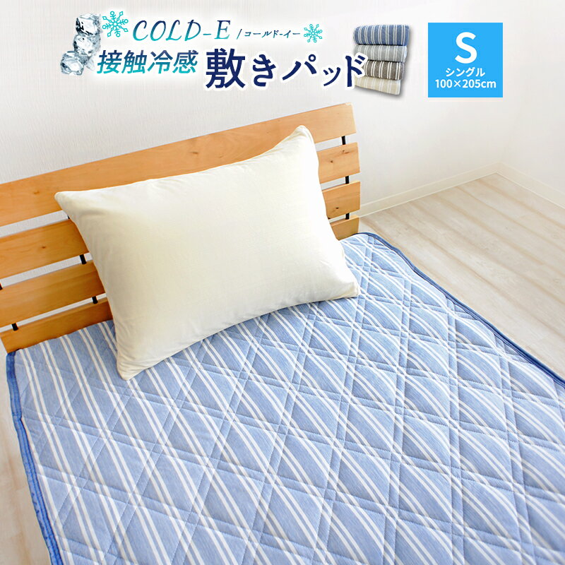 接触冷感 敷きパッド シングルサイズ 100×205cm COLD-E 触ると冷たい 敷きパッド 夏 涼感パッド 夏用 涼しい ひんやり マット 節電対策 エコ対策 寝具 ベッドパッド 速乾 丸洗いOK 洗える S
