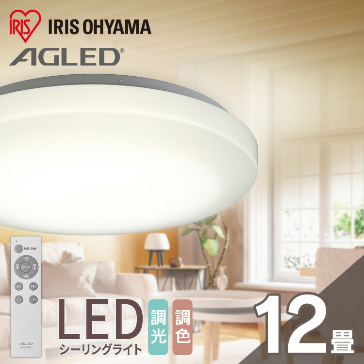 | シーリングライト 12畳 調光調色 LED LEDシーリングライト おしゃれ リモコン 薄型 コンパクト 省エネ リビング ダイニング 寝室 天井照明 照明器具 AGLED ACL-12DLGR 照明 明るい アイリスオーヤマ 1年保証