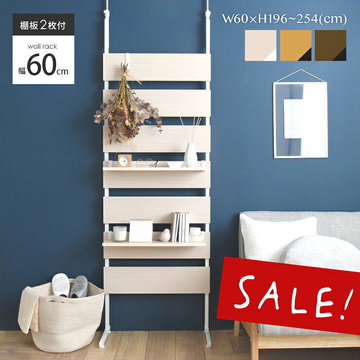 | 4/1(月)限定!最大20%OFFクーポン配布中♪ つっぱり棚 壁面収納 60幅 つっぱりラック ウォールラック 棚付き 突っ張り棚 フック付 北欧 パーテーション おしゃれ ラダーラック スリム 薄型 壁面 ウォールシェルフ <幅60cm本体 ウォールシェルフ WA240-60>