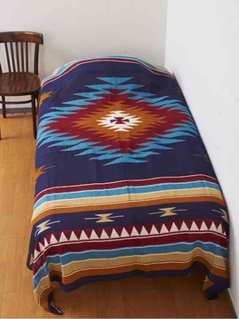 Amina Collection(アミナコレクション)ネイティブアメリカン・ナバホ柄ベッドカバー セミダブル使いやすいネイティブ柄のセミダブルサイズベッドカバー。
