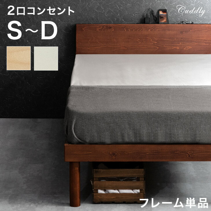 | ■20時~P5倍■ 累計50万台突破! 宮棚&2口コンセント付 ベッドフレーム 単品 シングルベッド セミダブルベッド ダブルベッド シングル セミダブル ダブル 天然木 すのこベッド ベッド ベット コンセント 宮付き 木製 宮棚 宮 ブラウン ナチュラル ホワイト おしゃれ 北欧