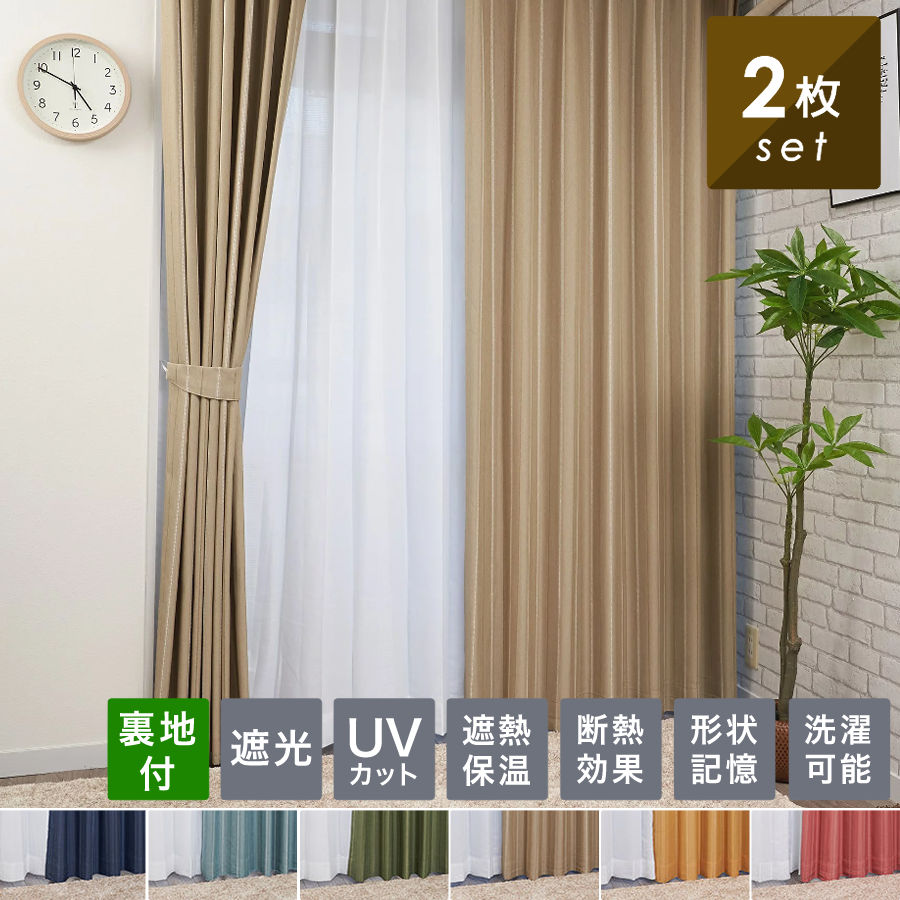 | カーテン 遮光カーテン 遮光 2枚セット 2枚組 裏地付 遮熱 断熱 保温 形状記憶 省エネ 幅 100 cm 丈 135cm 178cm 200cm 安い 北欧 シンプル かわいい おしゃれ 無地 既製 洗濯可能 ナチュラル オシャレ 子供部屋 6色 3サイズより選べる ブルー ベージュ