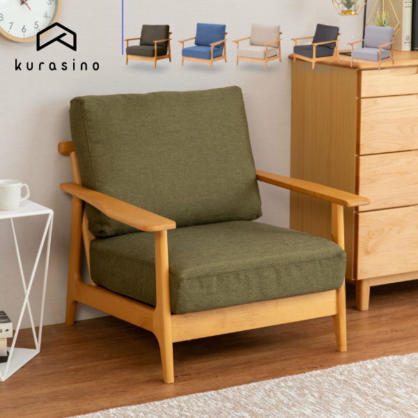 天然木のナチュラルカラーのフレームが魅力的な一人掛けソファー。