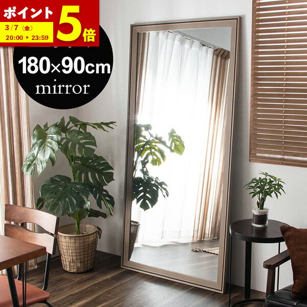 | 【ポイント5倍★4/4 20:00~4/5 23:59】 全身鏡 鏡 ミラー 姿見 大型ミラー W90 韓国 風 アンティーク 調 ナチュラル ビッグミラー 全身鏡 立掛け ダンス 美容室 店舗 ジャンボミラー ガラス製ミラー 送料無料〔D〕ブラウン グレー