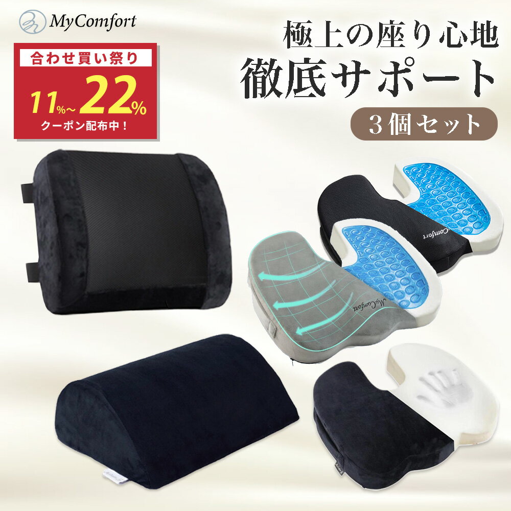 ★11%〜22%OFF!あわせ買いクーポン配布中★【椅子&腰クッション&フットレストセット】クッション 椅子 オフィス 車 運転 洗える 低反発 座布団 姿勢 デスクワーク ゲルクッション ジェルクッション 背もたれ ランバー MyComfort マイコンフォート