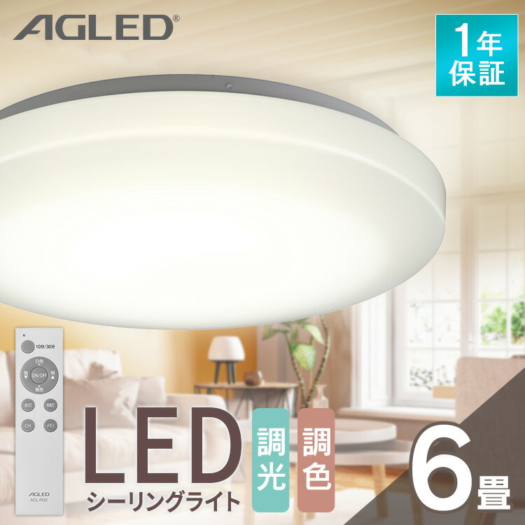 シーリングライト 6畳 調光調色 おしゃれ LEDシーリングライト 照明 LED リモコン 薄型 コンパクト 省エネ リビング ダイニング 寝室 天井照明 照明器具 スリム 一人暮らし 1年保証 AGLED ACL-6DLGR 明るい