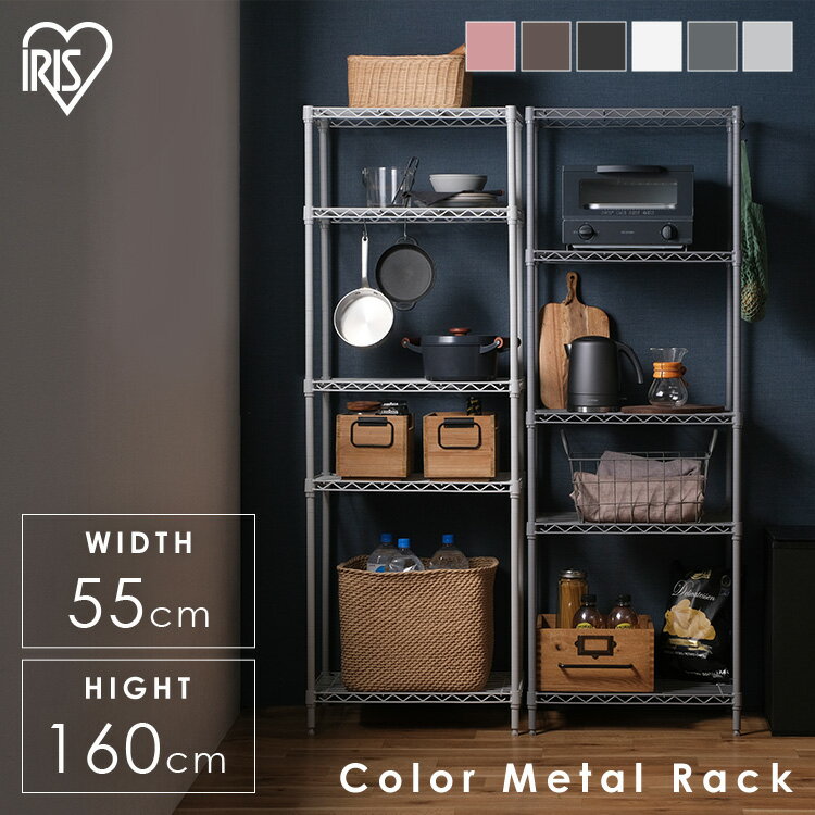 | ラック 棚 収納棚 キッチン スチールラック 5段 幅55 本棚 スリム おしゃれ オープンラック キッチン収納 収納 シェルフ 高さ160 インテリア ラック棚 隙間収納 すきま収納 アイリスオーヤマ CMM-55165【週】【★2】