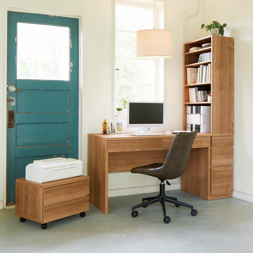 | クーポンで10%OFF[4/9 26h限定] ホームオフィス家具 日本製 引き出し付き 北欧 サイド 机 天然木調 配線すっきりデスクシリーズ デスク・幅120奥行60cm 825405