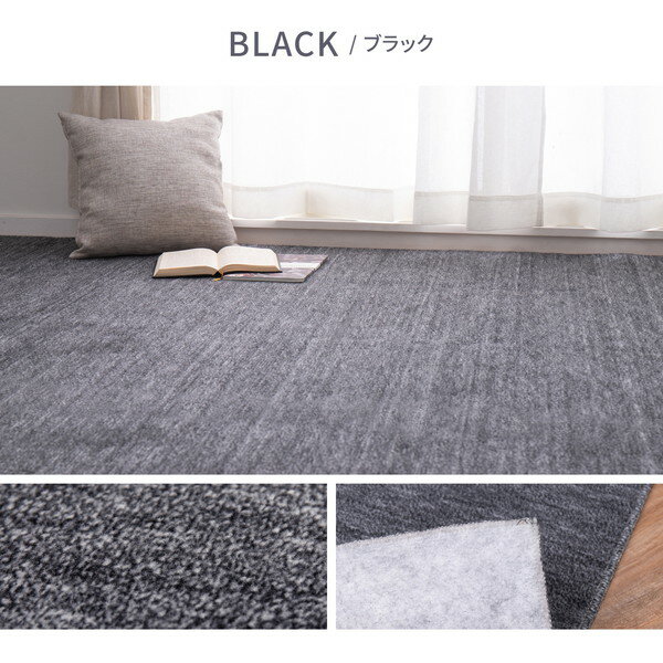 | カーペット ラグ 日本製 ペット 平織 江戸間 6帖 6畳 約261×352cm ホットカーペット対応 おしゃれ 北欧 ラウム ブラック 新生活