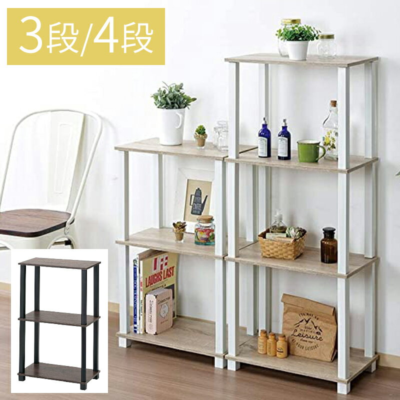 \ 半 額 & 千円オフ /先着クーポン 15(月)~ 収納ラック 3段 4段 スリム おしゃれ 収納 小物 北欧 簡単組立 オープンラック オープンシェルフ キッチン リビング 棚 収納棚 シンプル ヴィンテージ調 オーク ブラウン ホワイト 本棚 飾り棚 シェルフ