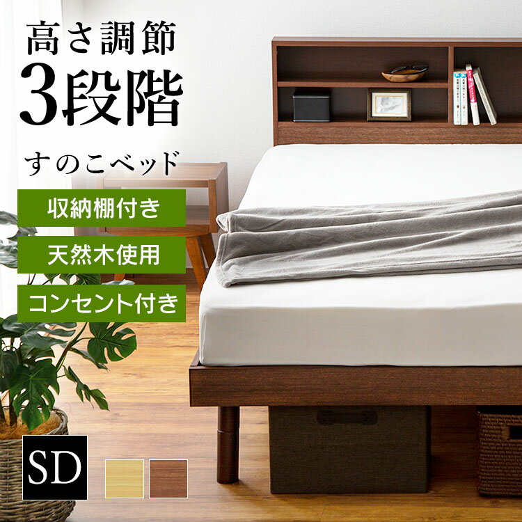 【15日最大P18倍】ベッド セミダブル すのこベッド ベッドフレーム ベッド 収納棚付きすのこベッド SKSB-SD ベッド 棚付き 高さ調整 収納付き コンセント付き ギフト 一人暮らし【AR対応】