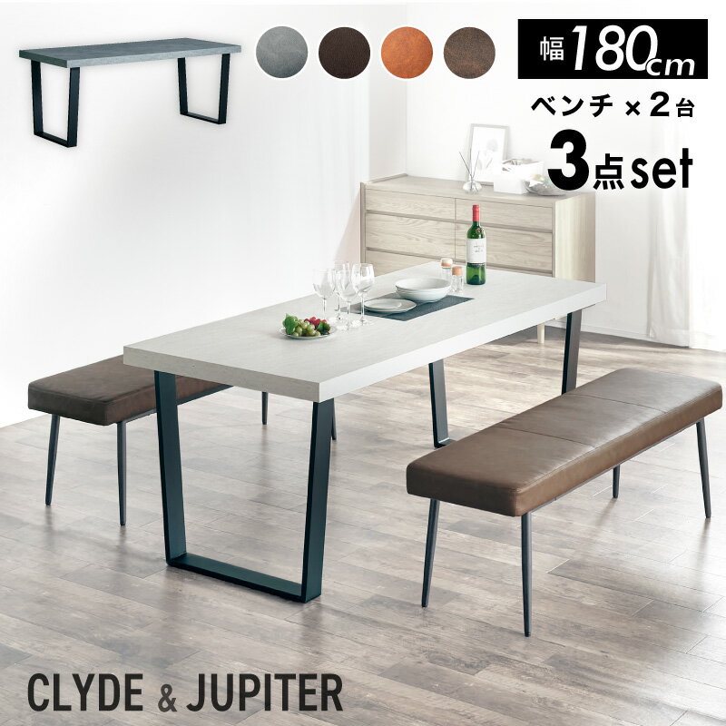 P5倍 4/16-18限定★ 汚れとキズに強い ダイニングテーブルセット ダイニングセット 6人掛け テーブル クライド ジュピター 3点セット 180cm 食卓用 ダイニングベンチ ベンチ ブラック 石目調 コンクリート調 大理石調 黒脚 ブラウン グレー ホワイト 6人用 6人 3人