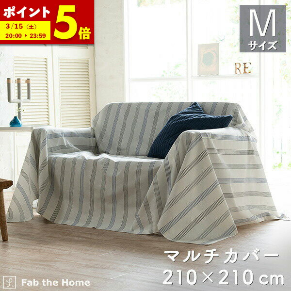 【ポイント5倍★4/21 12:00~23:59】マルチカバー ソファカバー Mサイズ ストライプ ウィッシュ 綿100% ベッドカバー オシャレ 北欧 寝具 コットン ベッドスプレッド 布団カバー ソファーカバー ふとん ホワイト ボーダー〔A〕 fab the home ファブザホーム