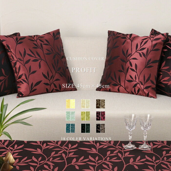 プロフィット クッションカバー サイズ:45cm×45cm 【45×45cm ファスナー式 日本製 洗濯可 水洗い 丸洗い ホテル カフェ レストラン かわいい 可愛い 北欧 おしゃれ ポリエステル製 ボタニカル柄 ベージュ グリーン ブラック】NANNA