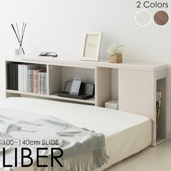 伸縮ヘッドボード LIBER(リベル) 幅100~140cm ヘッドボード ベッド収納 収納家具 本棚 ラック 伸縮タイプ(代引不可)【送料無料】